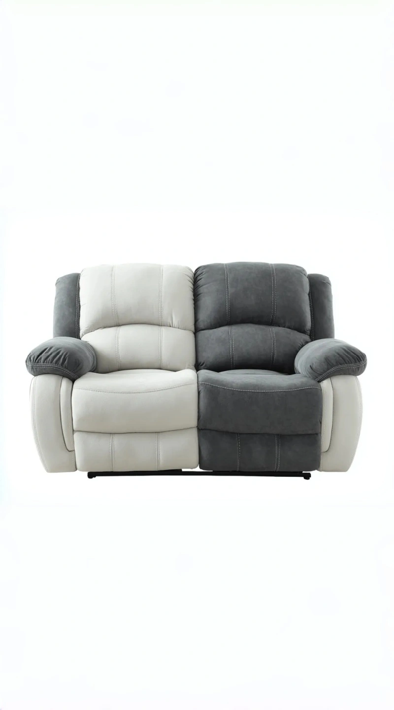 Ce canapé 2 places combine harmonieusement du tissu gris et du similicuir blanc, créant un style contemporain adapté au salon. Il dispose d'un dossier réglable permettant de personnaliser l'inclinaison pour un confort optimal lors des moments de détente.
